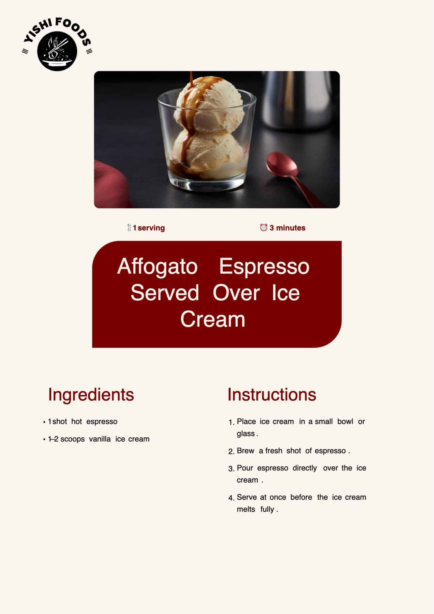 - Pour espresso directly over the ice cream.