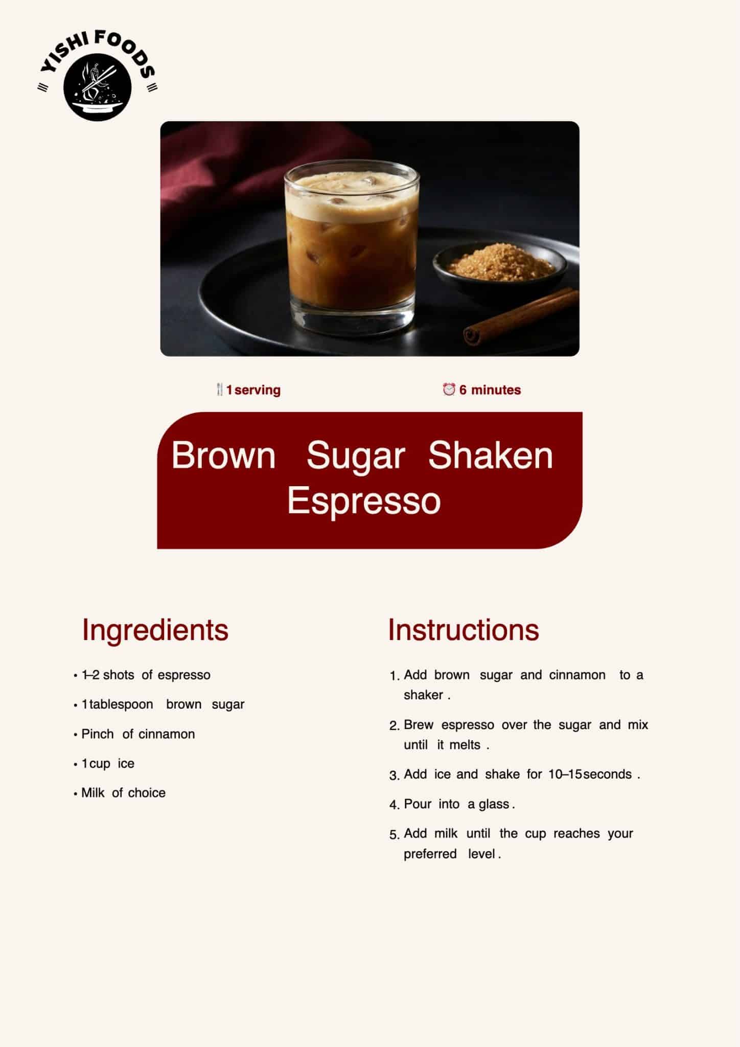 This drink blends espresso with brown sugar and cinnamon. A quick shake creates a smooth base, then milk brings it together.