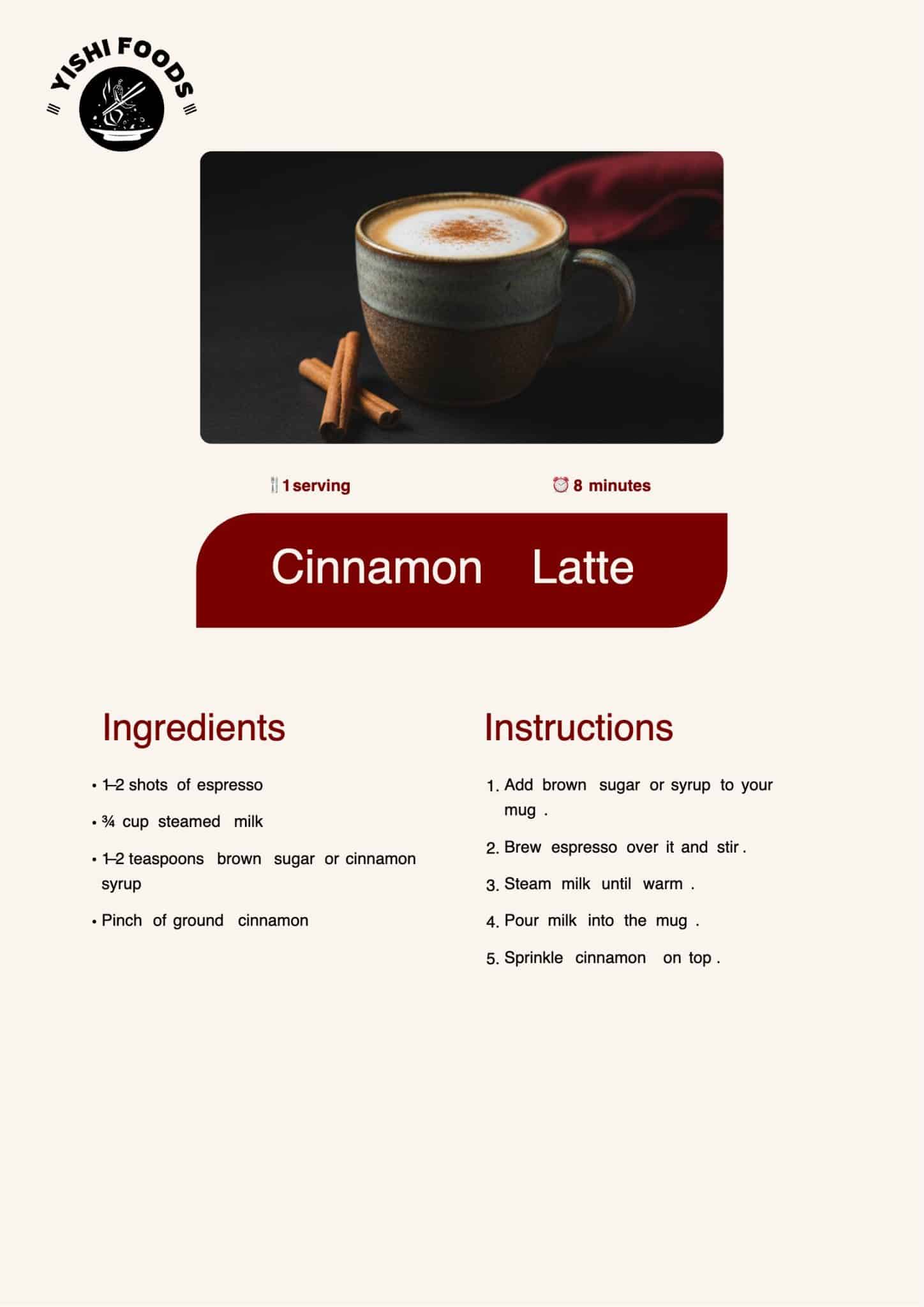 This drink mixes warm milk and espresso with a touch of cinnamon. It brings a cozy feel without extra steps.