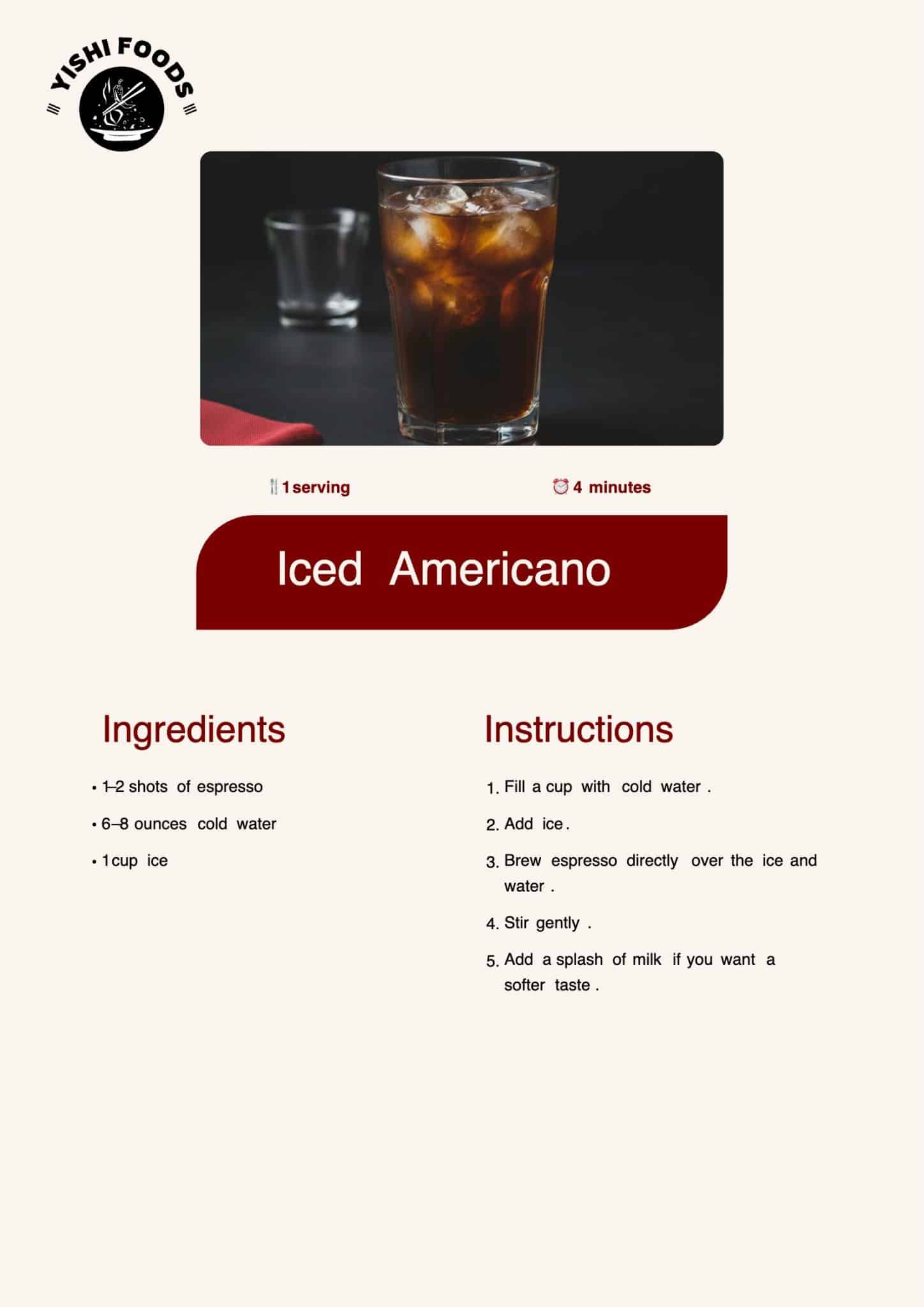This drink mixes cold milk and espresso over ice. It’s quick, light, and easy to adjust for sweetness.