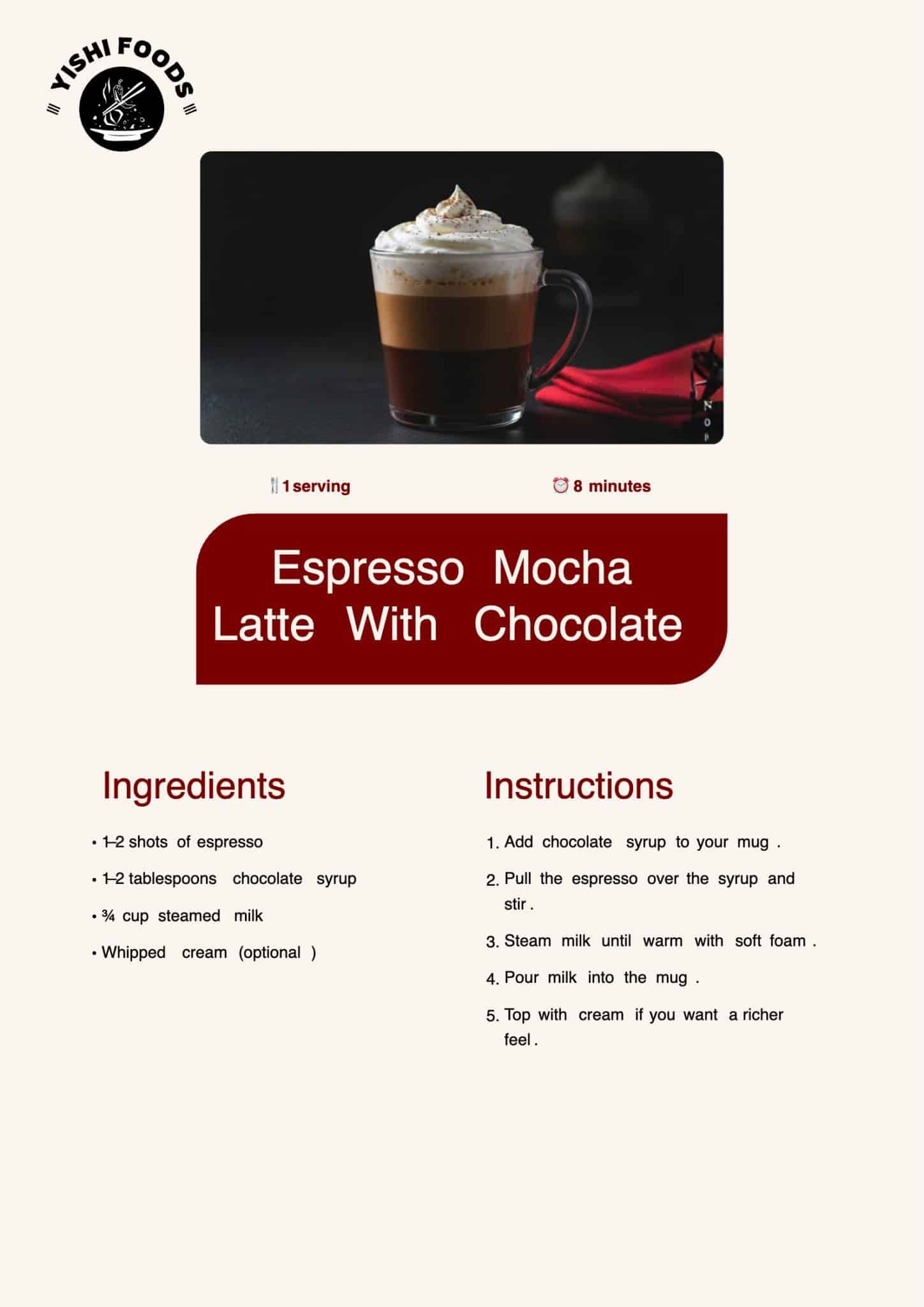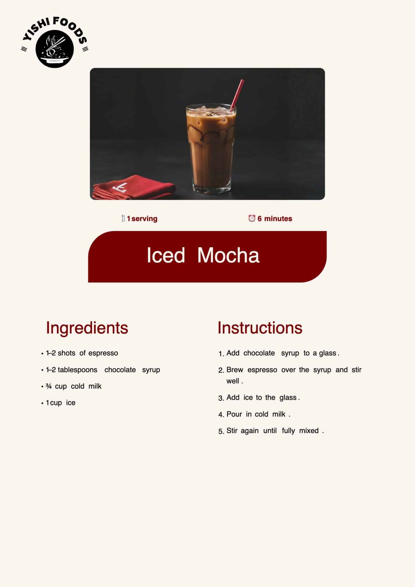 This drink brings together chocolate and espresso with cold milk. It’s smooth, chilled, and simple to make.