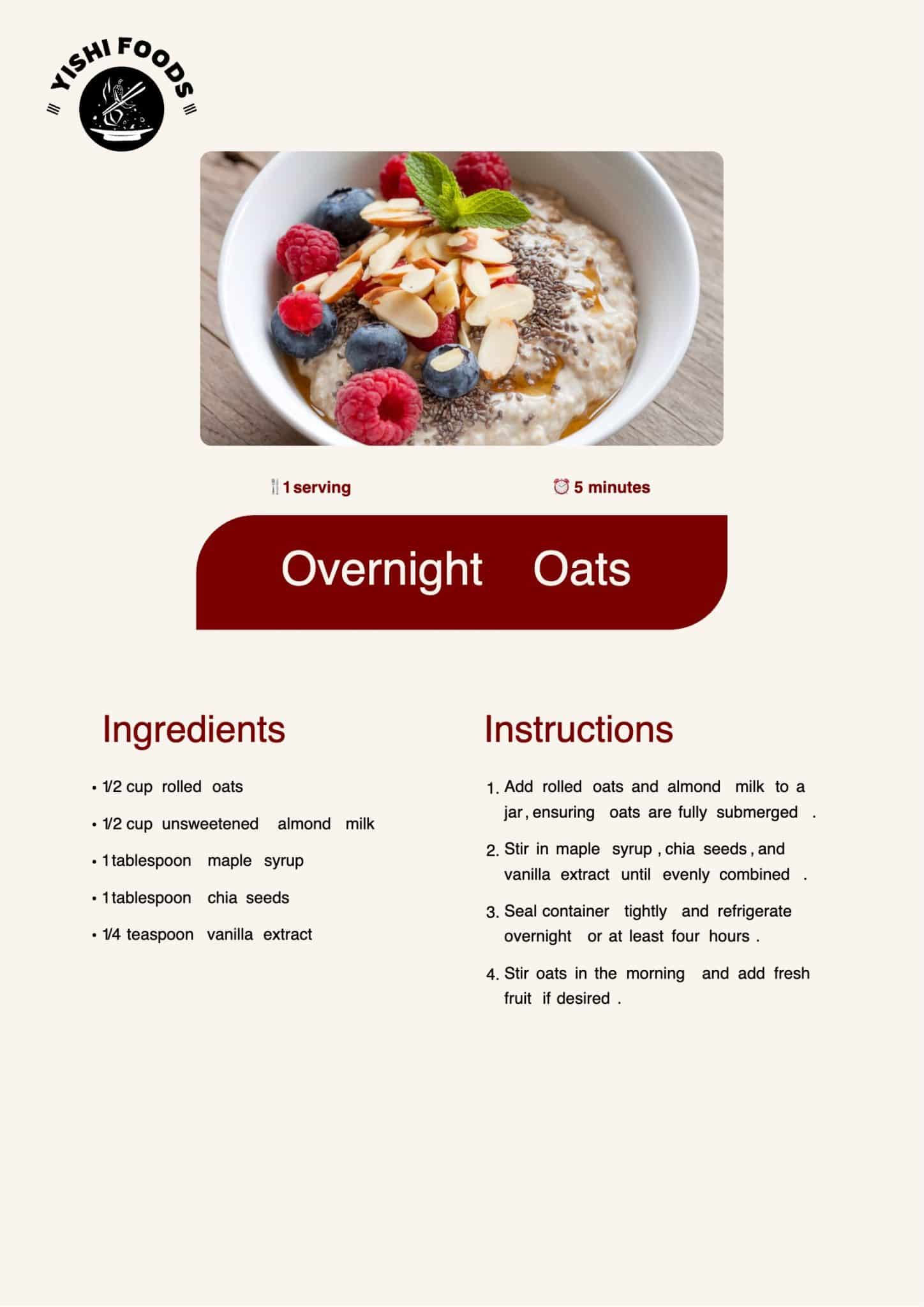 Combine oats with plant milk the night before for a no-cook breakfast that’s ready when waking up each morning.
