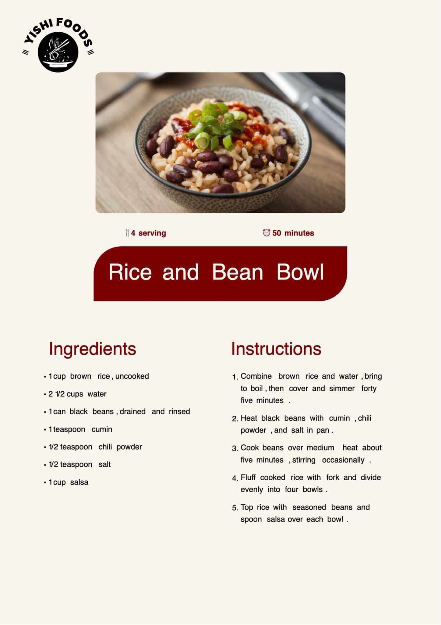 In a separate pan, heat black beans with cumin, chili powder, and salt over medium heat for five minutes. Fluff cooked rice with a fork and portion into containers. Top each portion with seasoned black beans and a generous spoonful of salsa.