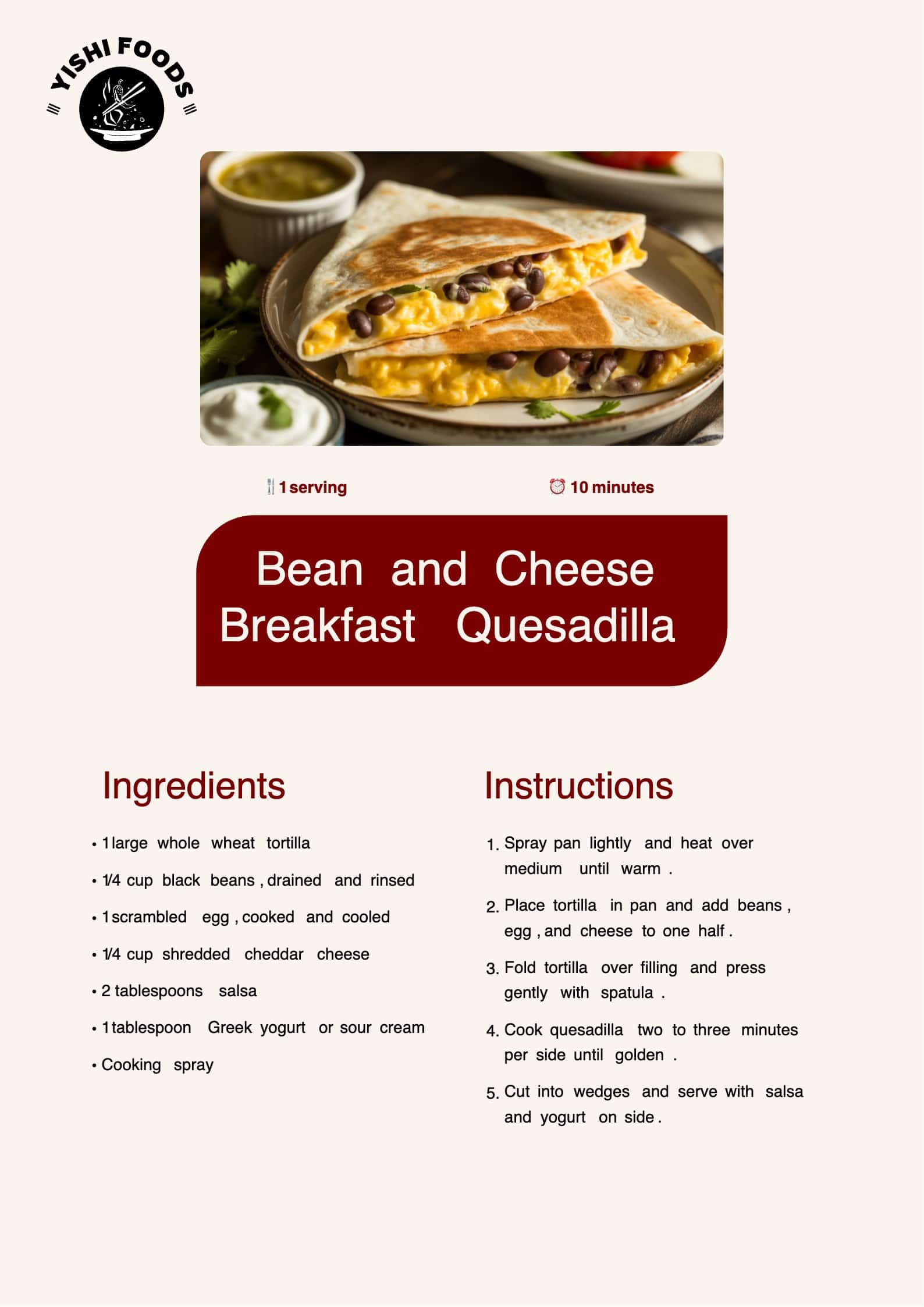 - 1 large whole wheat tortilla