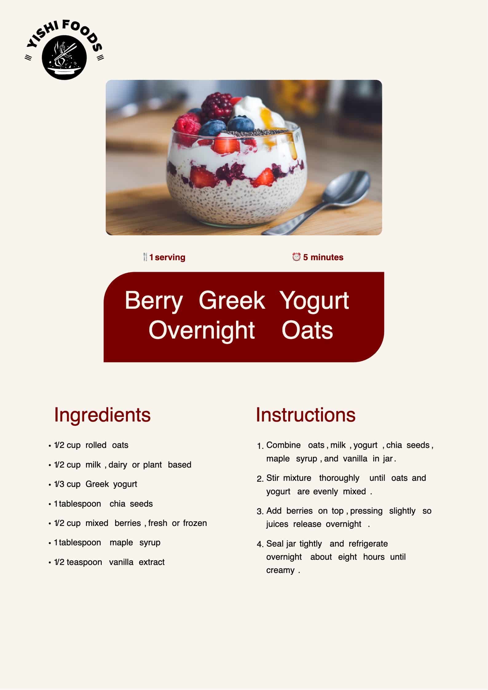 Total Time: 5 minutes prep + overnight chilling (8 hours)