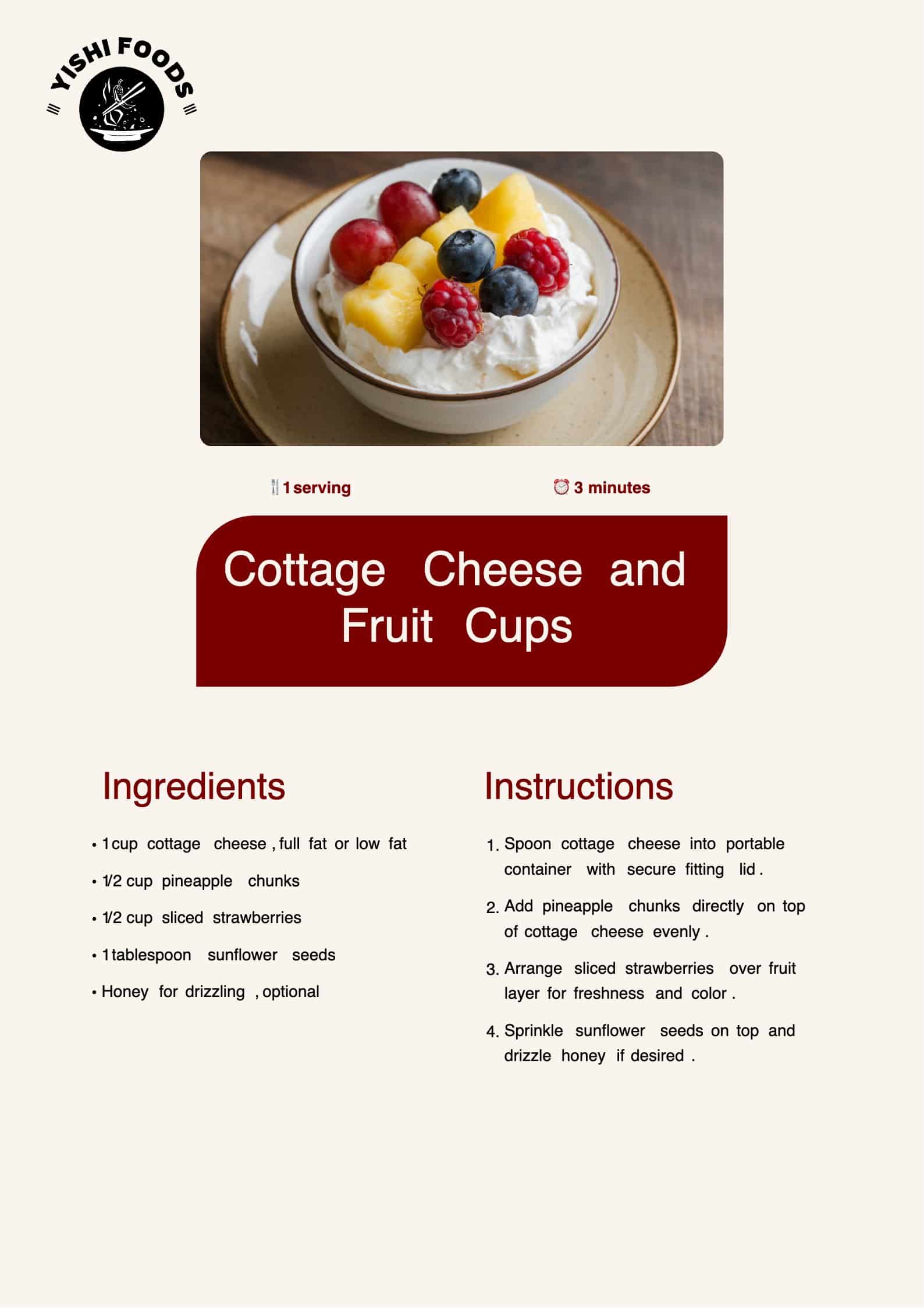 - 1 cup cottage cheese (full-fat or low-fat)