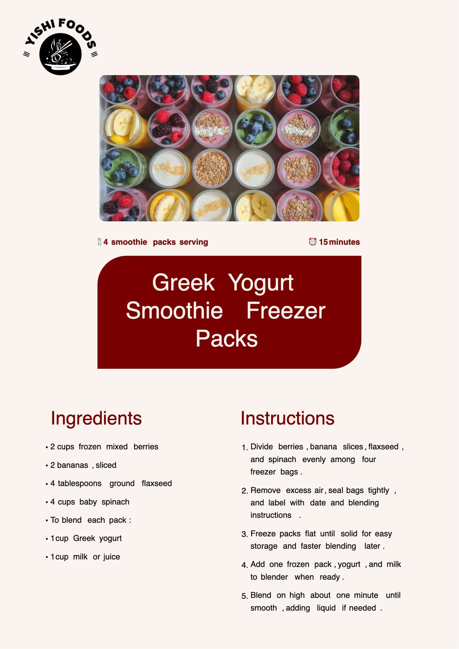 20. Greek Yogurt Smoothie Freezer Packs