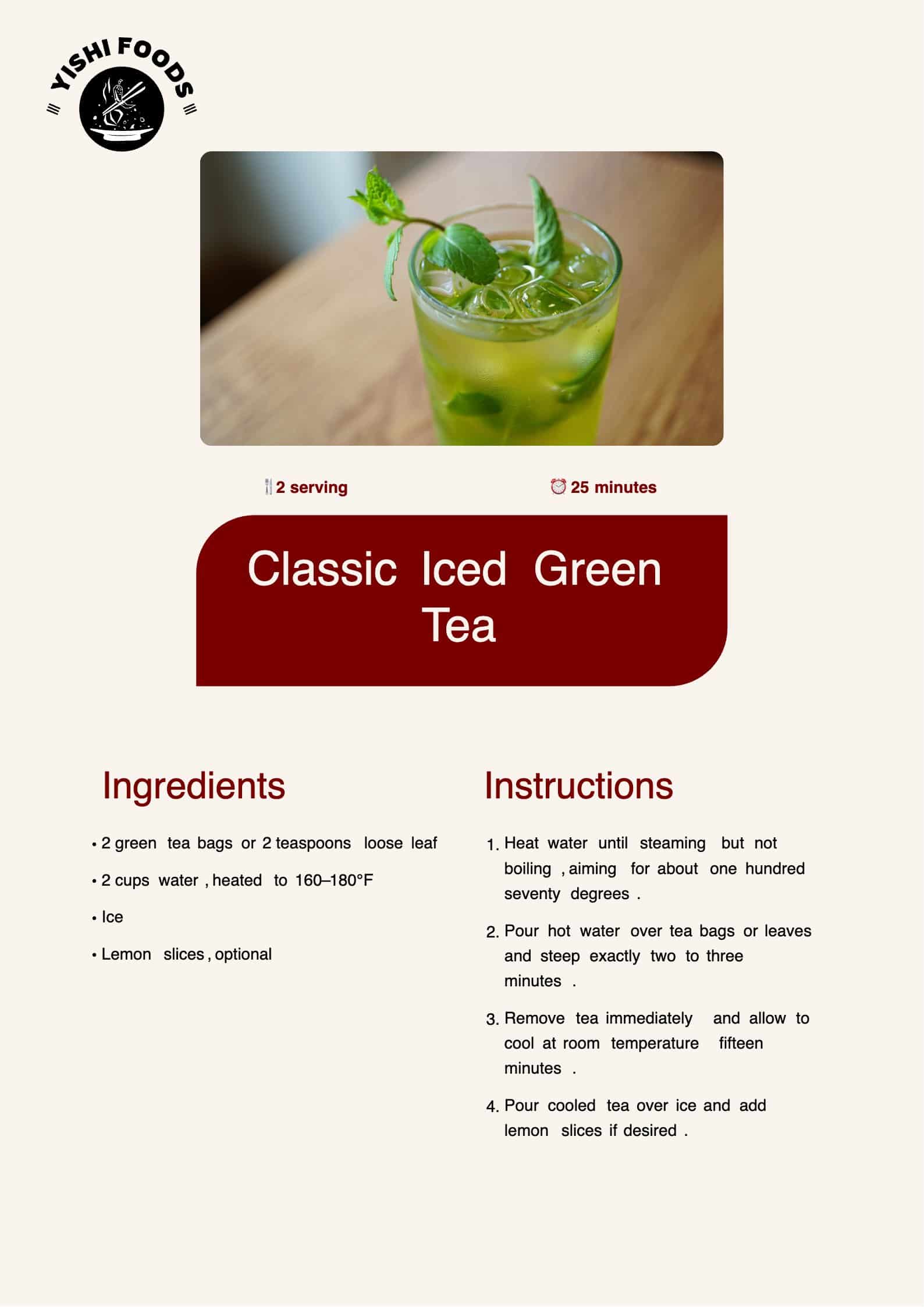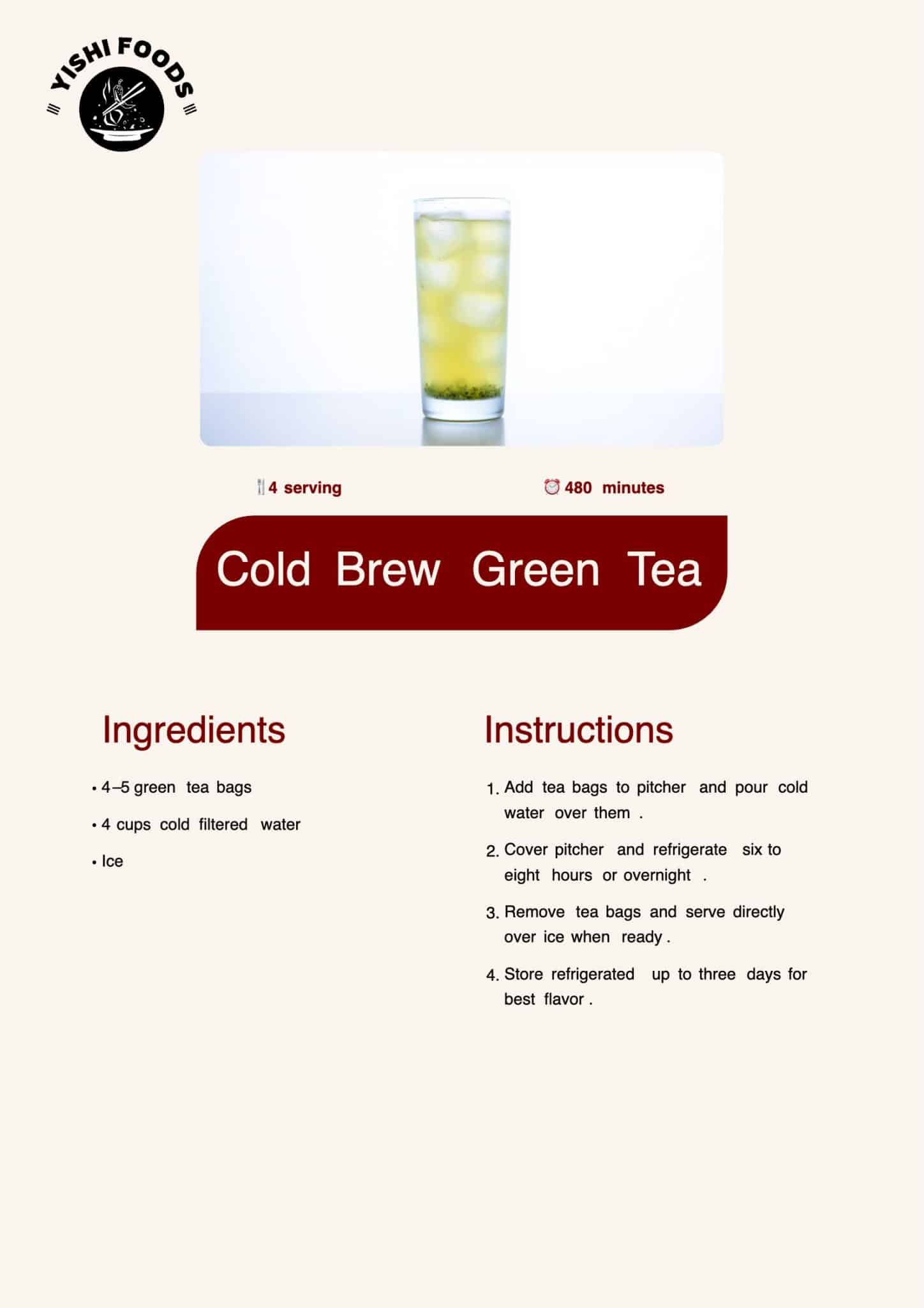 | Traditional Iced Green Tea | 1-3 | Quick refreshment and classic taste | Hot brew method, clean flavor |