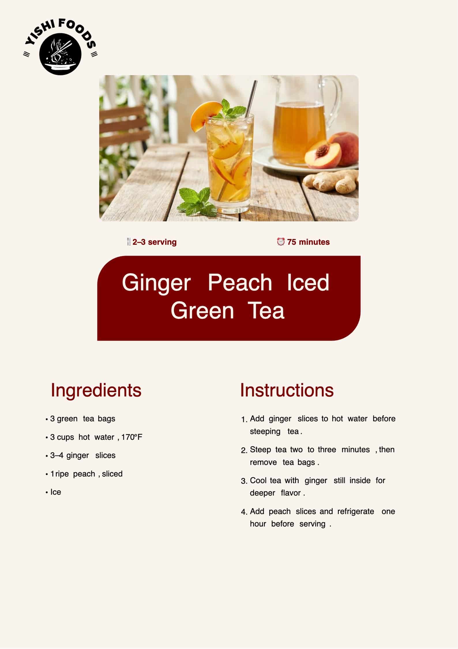 This combination pairs green tea with fresh ginger and peach for warmth and sweetness. The ginger adds depth without calories.