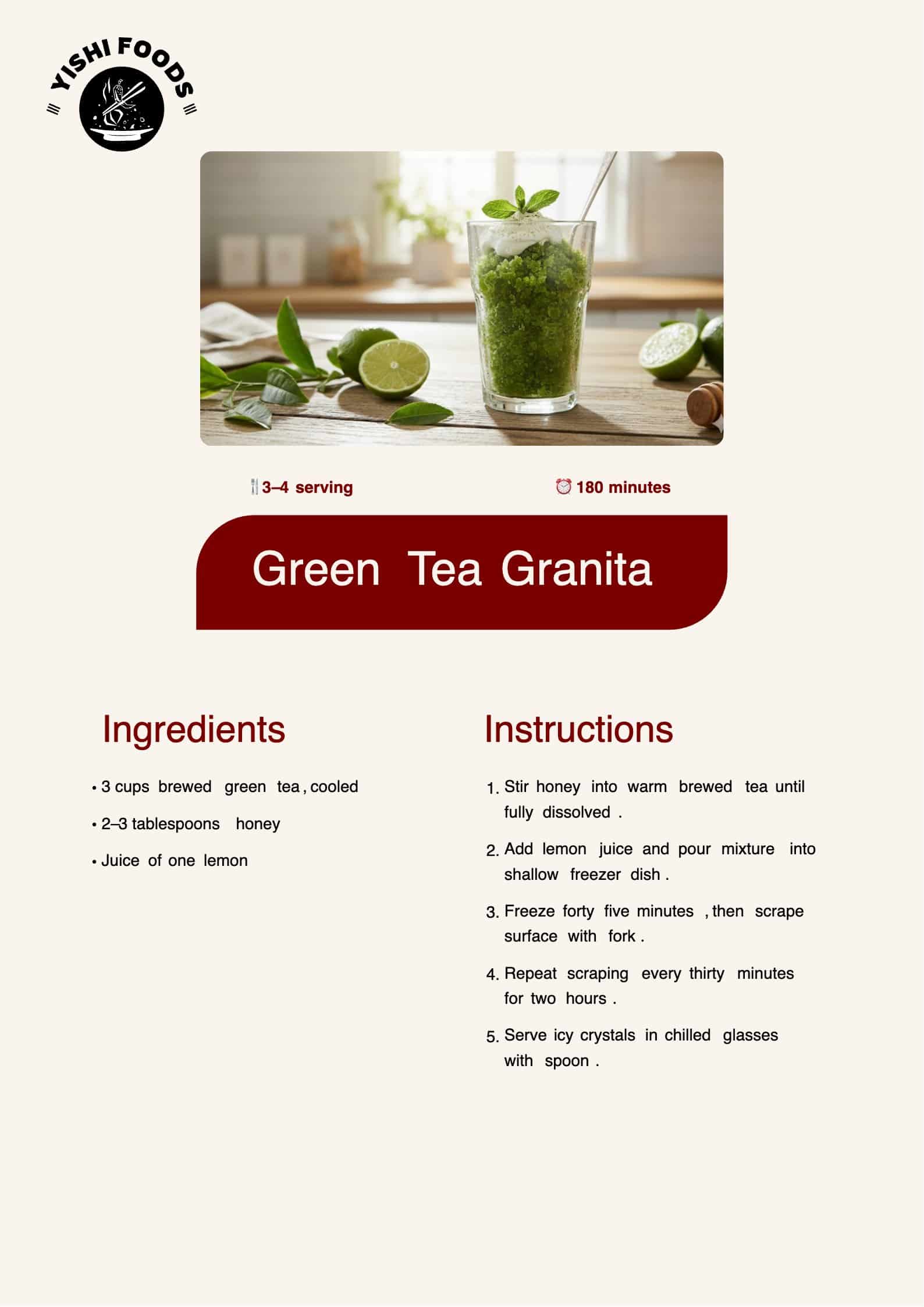 | Tea Type Swap | Sencha, jasmine, matcha (whisked), white tea | Changes flavor profile entirely | Any recipe in this guide |