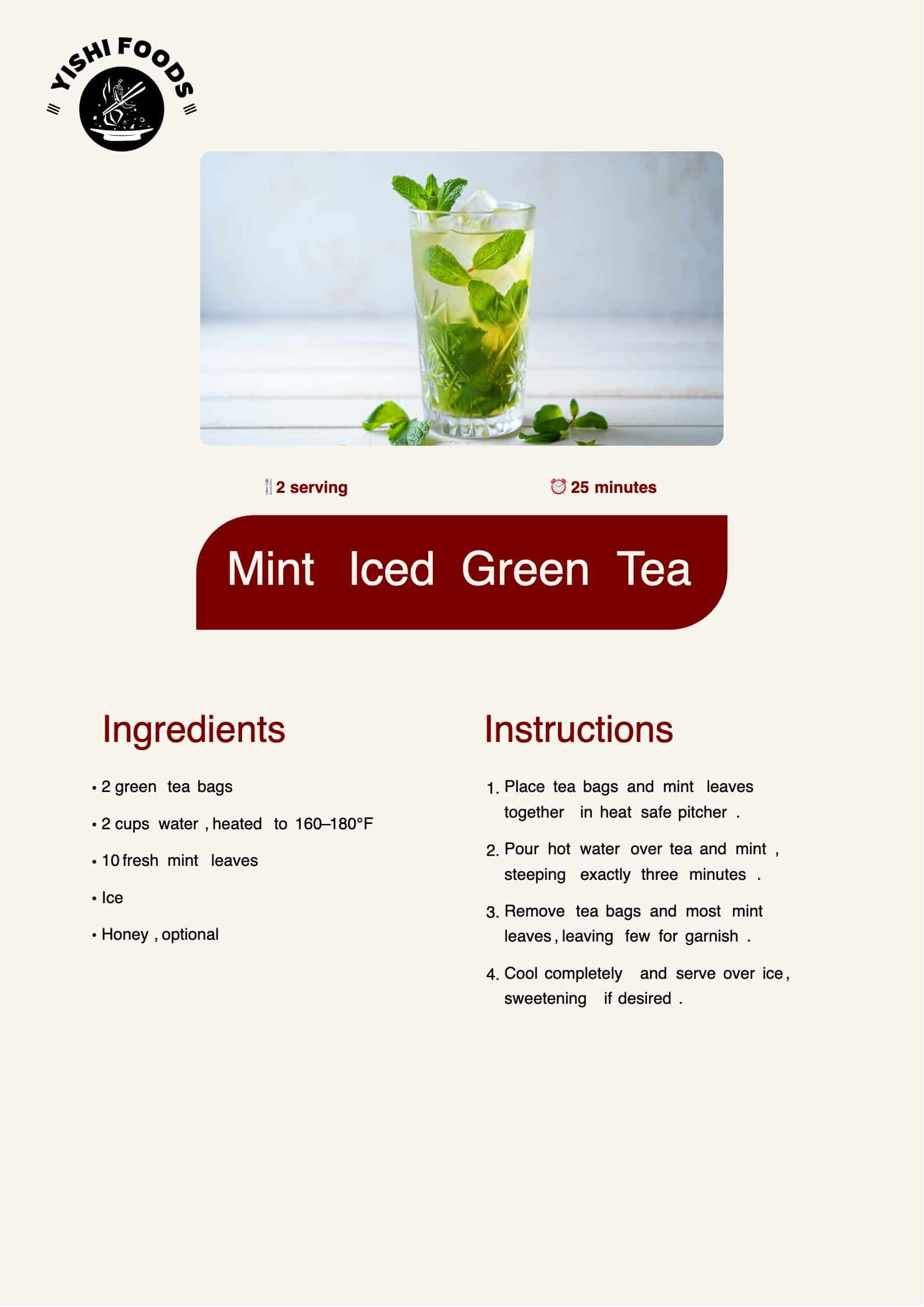 This recipe layers green tea with fresh mint for a cooling effect. The mint steeped alongside the tea for a stronger flavor.