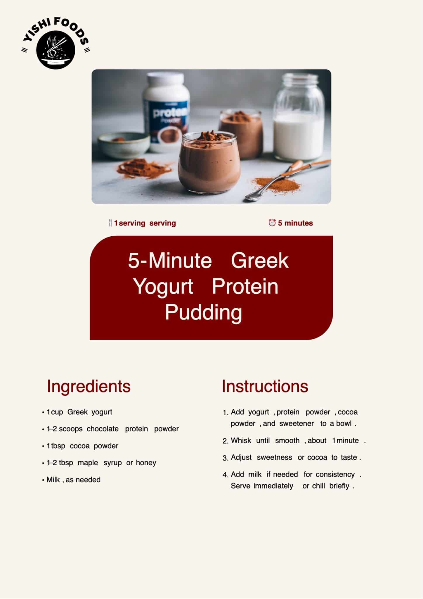 - Best types: Choose full-fat or 2% Greek yogurt (Fage, Chobani, or store brands) for thick pudding texture, avoid nonfat versions for creamy results.