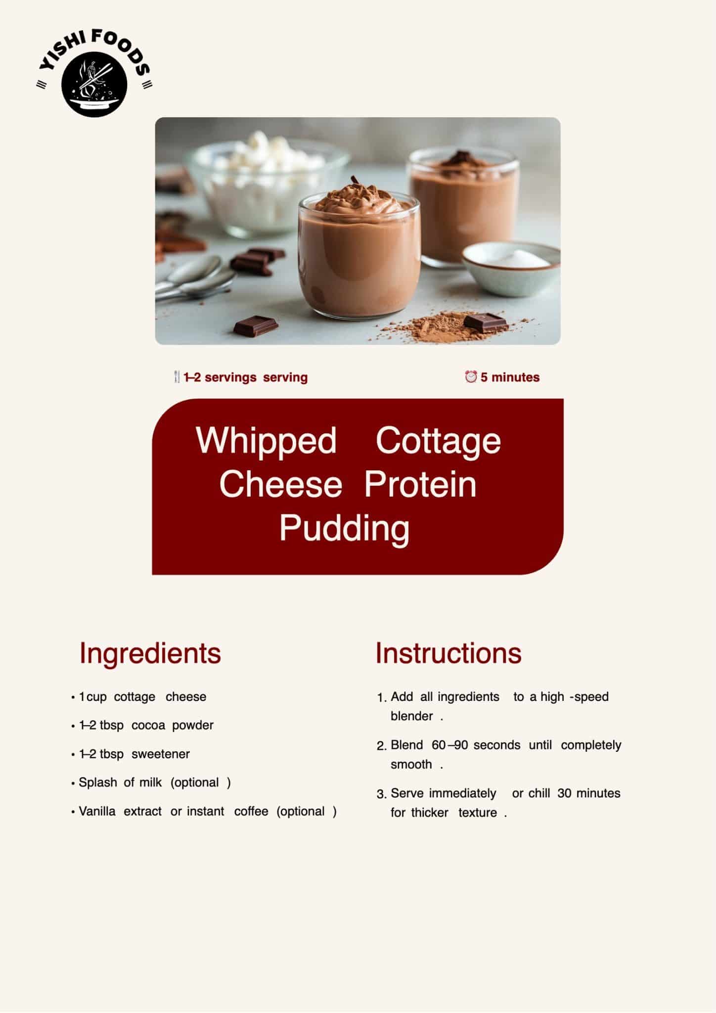 Who it’s for: This works well if you want a very thick pudding without extra ingredients. You only need cottage cheese, cocoa powder, and a sweetener.